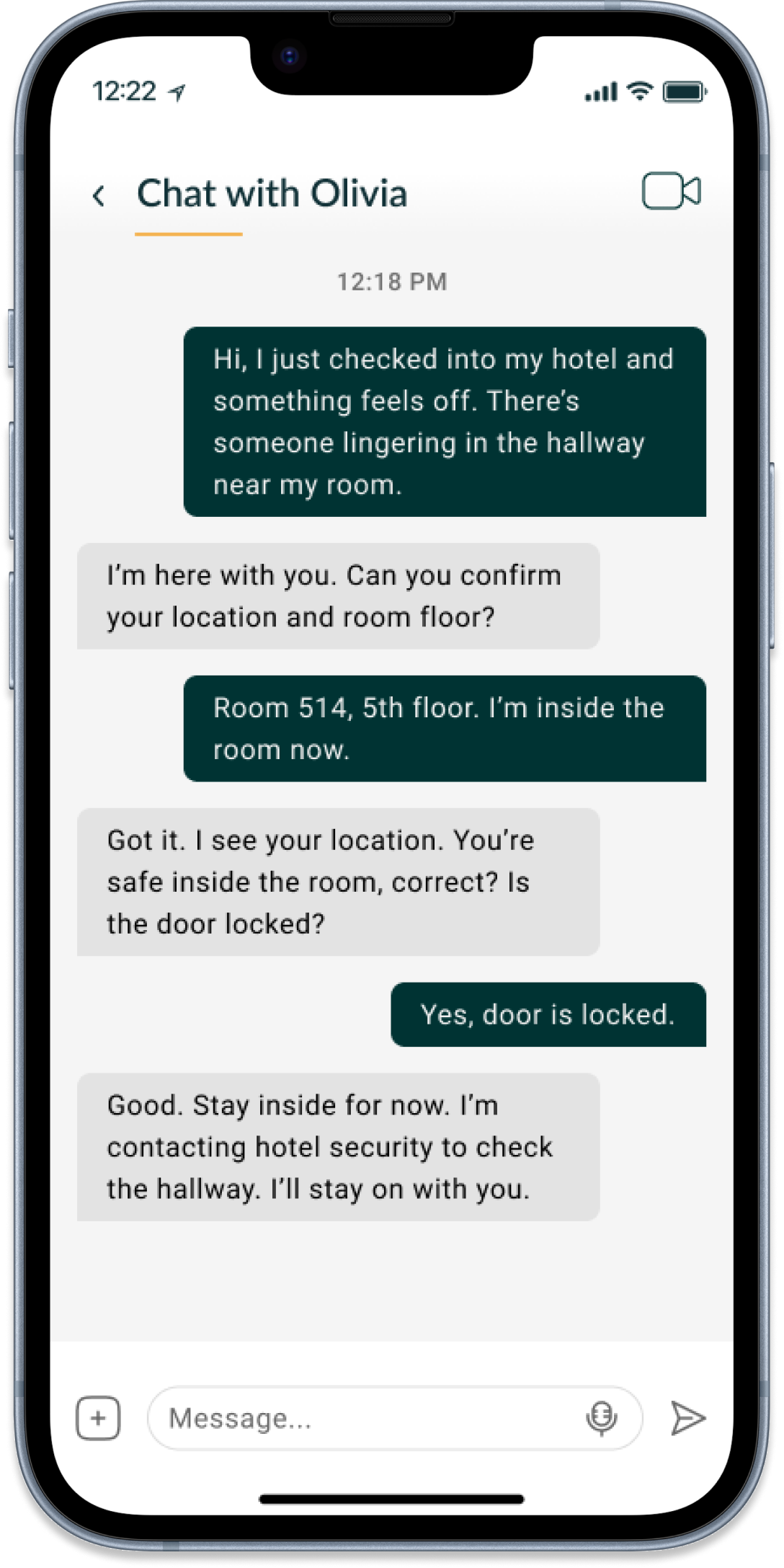 With RelyOn, you’re never truly alone - you can open a private chat with a trained security agent any time you feel unsettled. Just knowing someone’s there can make all the difference.